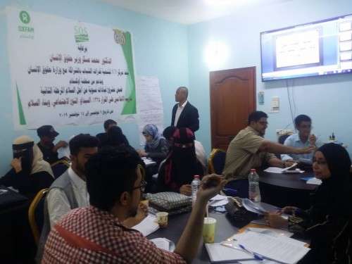 برعاية الدكتور / محمد عسكر وزير حقوق الإنسان تتواصل لليوم الرابع على التوالي في مقر مركز sos" " لتنمية قدرات الشباب وبالشراكة مع وزارة حقوق الإنسان ، وبدعم من منظمة أوكسفام " تدريب الإعلاميين على القرار 1325، السيداو، النوع الاجتماعي، وبناء السلام " بالعاصمة المؤقتة عدن .