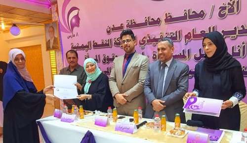 عقب ذلك جرى تكريم 26 موظفة مبرزة من كافة إدارات شركة النفط بعدن بشهادات تقديرية نظير جهودهن الكبيرة خلال الفترة الماضية.
