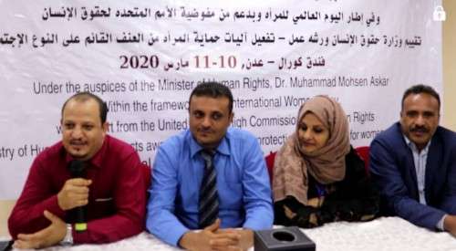 اختتمت صباح اليوم الأربعاء وزارة حقوق الإنسان / عدن " ورشة عمل حول تفعيل آليات حماية المرأة من العنف القائم على النوع الاجتماعي " والتي استمرت خلال الفترة 10-11 مارس 2020م .