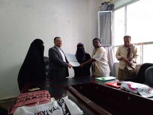 وأثناء التكريم قالت رئيسة الجمعية "بالخير نبني حياة" الإجتماعية التنموية الخيرية المحامية نورا العمودي قائلا:"قمنا صباح بتكريم الأمين العام للمجلس المحلي مهدي الحامد وعبدالناصر اليزيدي مستشار المحافظ لشؤون الاستثمار بمكتب السلطة المحلية على جهودهم التي بذلوها من جانبها أثناء تدشين إفتتاح الجمعيةفي الدرة التي نتظمتها الجمعية ،بالمشاركة مع البورد الألماني للتدريب والإستشارات (GARENBOARD)فرع اليمن،وكان لحضورهم دور بارز وملفت أثناء التدشين في مقر الجمعية بمدينة الكود بمديرية خنفر وفي خدمة أبناء المحافظة وهذا شي بسيط نقدمها لكم".