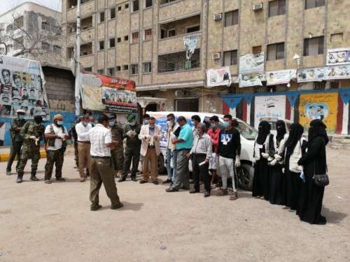 من جانبه تحدث الاخ احمد جيزاني رئيس مبادرة شباب كلنا عدن ، مشيدا بالجهود التي تقوم بها قيادة وشباب ثورة 16فبراير لتسهيلهم مهمة عمل الفريق واستضافتهم في، ساحه الشهداء،لتدشين الحملة التوعية بمخاطر فيروس كورونا... مؤكدا بان الحملة ستقوم بعمل توزيع الملصقات الارشادية في التجمعات السكانية والاسواق والمولات .