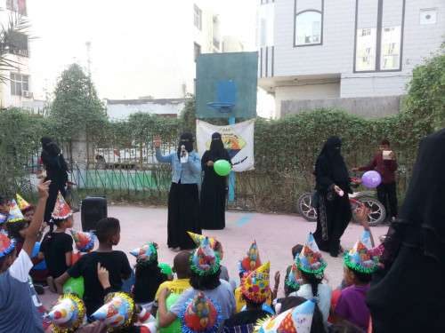 حرصا على الرقي بالوعي العام للمواطنين ومشاركتهم افراح العيد استقبلت حديقة بلوك 65 بالمنصورة اليوم 3 اغسطس طاقم مركز التوعية البيئة بصندوق النظافة وتحسين العاصمة عدن واطفال المنطقة في حفل توعوي ترفيهي حمل في مضمونة رسالة الاهتمام بنظافة المدينة عامة والحدائق على وجه الخصوص وفي ظاهرة المرح والتنفيس عن الاطفال من خلال الفقرات التي تضمنها الحفل البيئي .