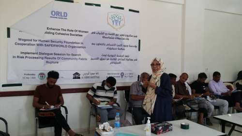 وفي اختتام الجلسة الحوارية التي أقيمت في جمعية الفردوس الخيرية ألقت رئيسة مؤسسة وجود للأمن الإنساني أ / " مها عوض كلمة : متمنية الأمن والأمان والسلامة لمدينة عدن والتخلص من كل وباء والإمراض وخاصة خلال الفترة التي انتشرت جائحة لكوفيد (19)..موضحة أن الجلسات الحوارية تأتي ضمن مشروع "تعزيز دور النساء والشباب في بناء مجتمعات متماسكة " نظمتها مؤسسة وجود للأمن الإنساني وبالتعاون مع منظمة سيفرورلد.