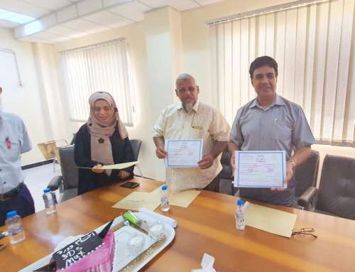 كما قدم شكره للاستاذ أيمن محمد شيخ مدرب الدورة الذي قام بجهود كبيرة خلال مدة انعقاد الدورة وتقديم كافة التسهيلات والمعلومات للمشاركين فيها متمنيا للجميع دوام التوفيق والنجاح.