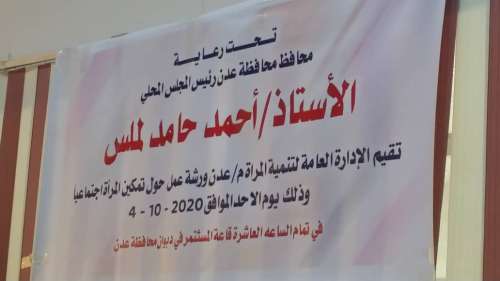نظمت الإدارة ألعامة لتنمية المرأة في ديوان محافظه عدن ورشة عمل حول "تمكين المرأة اجتماعيا ، برعاية محافظ محافظة عدن رئيس المجلس المحلي الأستاذ احمد حامد لملس’ استمرت يوم واحد وبمشاركة عدد من القيادات النسوية ومنظمات المجتمع المدني.