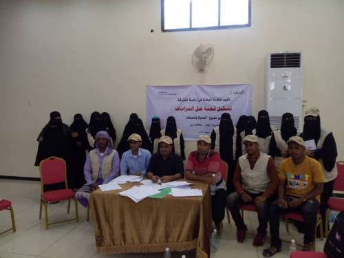 وخلال اللقاء تم تشكيل لجنة حل النزاعات المجتمعية التي تم اختيارها من الوسطاء المحليين وانتخاب بيداء عبدالرحمن رئيس اللجنة وسالم الجلاء أمين عام والتي سيكون من مهامها السعي لإيجاد حلول النزاعات المجتمعية على الحوار في إطار ما منطقة مستهدفة من المشروع وهي سواحل وباجدار والطميسي والمحل .