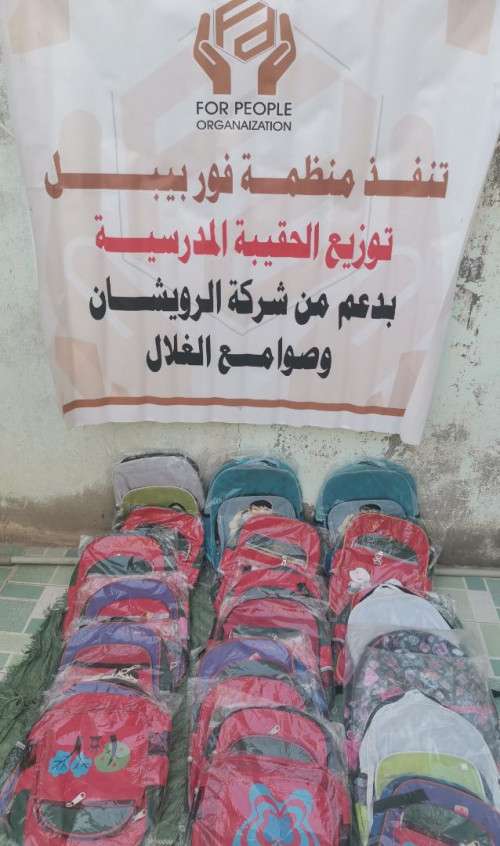 ضمن برامج العودة إلى المدرسة نفذت منظمة فوربيبل مشروع توزيع حقائب مدرسية للفئات الاشد فقرا والايتام مقدمة من شركة الرويشان لصوامع الغلال.