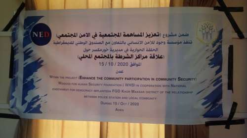 والجدير بالذكر بان الجلسة الحوارية جاءت ضمن مشروع " تعزيز المساهمة المجتمعية في الأمن المجتمعي بالتعاون مع الصندوق الوطني للديمقراطية NED، ونظمتها مؤسسة وجود للأمن حول " علاقة مراكز الشرطة بالمجتمع المحلي ".