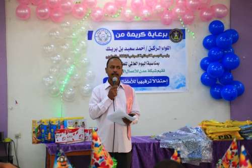 أقامت شبكة "عدن" للأعمال الإنسانية اليوم السبت، حفلا ترفيهيا للأطفال الايتام بمناسبة اليوم العالمي للطفل، بدعم من اللواء احمد سعيد بن بريك رئيس الجمعية الوطنية للمجلس الانتقالي الجنوبي.