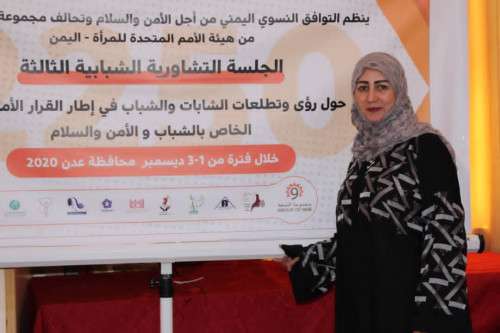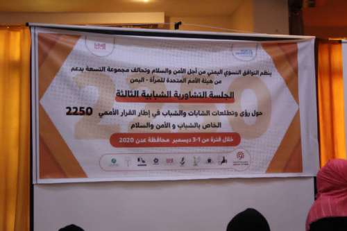 دشن التوافق النسوي من اجل الأمن والسلام وتحالف مجموعة التسعة في قاعة اللوتس الجلسة التشاورية الثالثة " حول رؤى وتطلعات الشابات والشباب في إطار القرار الاممي 2250 الخاص بالشباب والأمن والسلام و بدعم من هئية الامم المتحدة للمرأة اليمن ، خلال الفترة 1-3 ديسمبر 2020م بالعاصمة عدن .