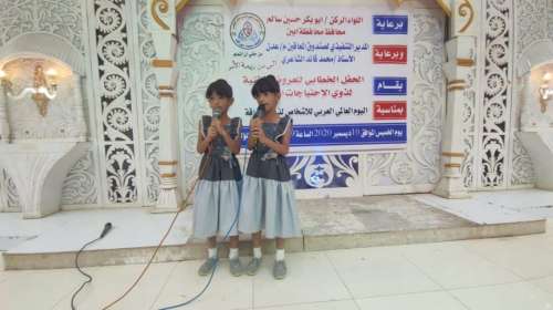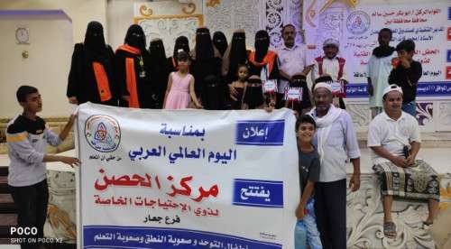 برعاية المدير التنفيذي لصندوق المعاقين عدن وبحضور الشيخ حيدرة دحة الفضلي مستشار محافظ محافظة أبين الشخصية الاجتماعية التي لها ثقل شعبيا كبيرا والاستاذ عبدالمجيد الصلاحي عضو المجلس المحلي بالمحافظة والشيخ ناصر المنصري مدير عام مديرية خنفر والأمين العام لجمعية أطفال عدن للتوحد الاستاذة بثينة محمد ابراهيم أقام مركز الحصن لذوي الاحتياجات الخاصة حفلا خطابي وعروض فنية وذلك بمناسبة اليوم العالمي العربي للأشخاص ذوي الإعاقة.