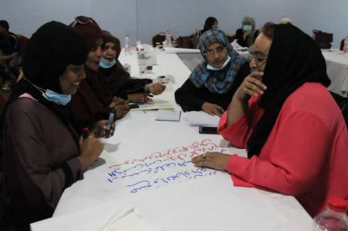 كما تم نقاش حول وضع حلول للقضايا المطروحة التي تم اختيارها من قبل المشاركات ، اللواتي تم تقسيمهن إلى ثلاث مجموعات لثلاث قضايا مختلفة وهي إعادة الأعمار ، والأمن ، ومشاركة المرأة في صنع القرار.