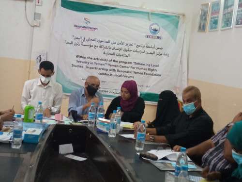 وكان الأستاذ محمد قاسم نعمان رئيس مركز اليمن لدراسات حقوق الإنسان قد افتتح اعمال المنتدى مرحبا بالمشاركين والمشاركات ومؤكدا على أهمية هذه المنتديات الحوارية التي يتم تنفيذها ضمن برنامج تعزيز الامن على المستوى المحلي والذي ينفذه المركز بالشراكة مع مؤسسة رنين اليمن