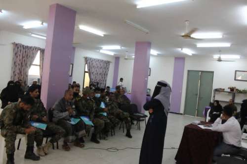 بحضور رئيسة مؤسسة وجود للأمن الإنساني أ/ مها عوض وبمشاركة ، العميد / احمد علي مانع / قائد شرطة القاهرة ومساعد مدير أمن عدن ، العقيد / محمد قائد صالح – مدير شرطة الدرين حي عبد العزيز، أ/ محمد علي منصور – نائب قائد شرطة كابوتا ، أ/ سند محمد النعيمي – نائب مدير شرطة المنصورة وعدد من طاقم البحث الجنائي والتحريات وأقسام مديرية المنصورة .