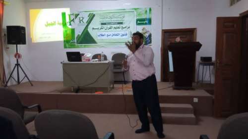 ضمن برامج تعليم القرآن الكريم أقامت إدارة التعليم بمؤسسة الريف للتنمية دورة تأهيلية لمعلمات حلقات تعليم القرآن الكريم في كيفية التعامل مع الطلاب حيث تم في هذه الدورة استضافة المدرب والمرشد الأسري الأستاذ عمر سالم دومان .
