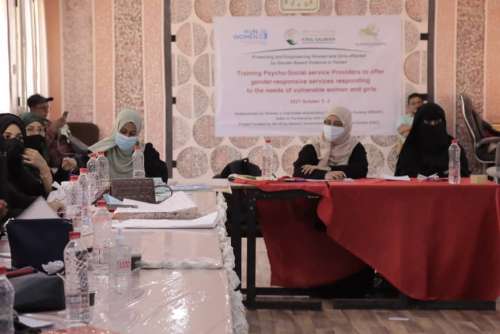 وجرى تدريبهم لمدة 4 أيام على احتياجات المرأة وأهمية تقديم الخدمات المستجيبة للنوع الاجتماعي (بما في ذلك تأثير الأزمات والكوارث على النساء والفتيات المستضعفات والمهمشات والصعوبات التي يواجهها ضحايا العنف القائم على النوع الاجتماعي في الوصول إلى الخدمات النفسية الاجتماعية المستجيبة للنوع الاجتماعي) و المعايير التشغيلية وتطبيقها.