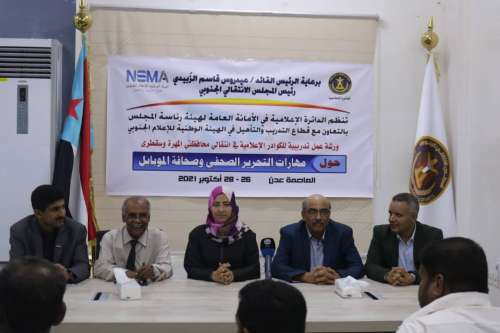 اختتمت الدائرة الإعلامية بالأمانة العامة لهيئة رئاسة المجلس الانتقالي الجنوبي ، في العاصمة عدن، ورشة العمل التدريبية التي نظمتها بالتنسيق مع قطاع التدريب والتأهيل بالهيئة الوطنية للإعلام الجنوبي، لتعزيز مهارات منتسبي الإدارات الإعلامية في محافظتي المهرة وسقطرى في التحرير الصحفي وصحافة الموبايل، برعاية الرئيس القائد عيدروس الزُبيدي رئيس المجلس الانتقالي الجنوبي.