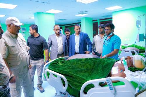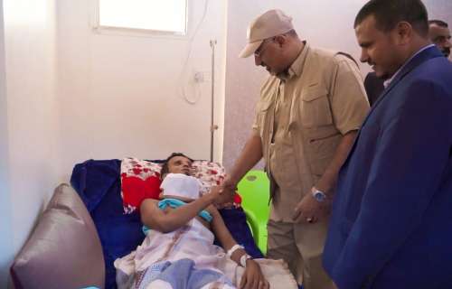 واطمأنّ الرئيس القائد خلال زياراته على الوضع الصحي للعميد الخضر حمصان قائد اللواء الثامن صاعقة الذي أصيب وهو يؤدي واجبه الوطني في مطاردة عناصر الإرهاب في وادي عومران شرق محافظة أبين، موجها بسرعة نقله إلى الخارج لاستكمال العلاج حال استقرار حالته الصحية.