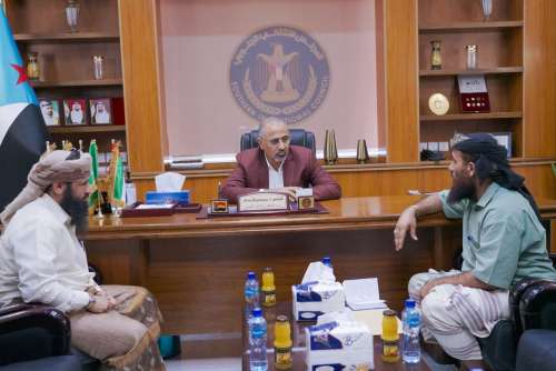 حضر اللقاء، العميد محسن الوالي قائد قوات الاحزمة الأمنية.