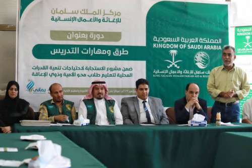 اختتم مركز الملك سلمان للإغاثة والأعمال الإنسانية تنفيذ 10 دورات تدريبية في مجال طرق ومهارات التدريس للمعلمين في مراكز محو الأمية بمحافظات عدن وأبين وحضرموت.