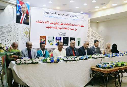 نظمت الأمانة العامة لاتحاد أدباء وكتاب الجنوب، يوم الخميس، في قاعة قصر العرب، حفل توقيع ست كتب من الإبداعات الأدبية للشباب والشابات من إصدارات اتحاد أدباء وكتاب الجنوب، برعاية الرئيس القائد عيدروس الزُبيدي رئيس المجلس الانتقالي الجنوبي، نائب رئيس مجلس القيادة الرئاسي وبحضور الأستاذ فضل محمد الجعدي عضو هيئة الرئاسة نائب الأمين العام للأمانة العامة لهيئة رئاسة المجلس الانتقالي.