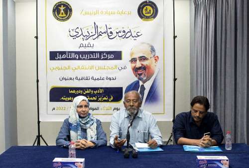 نظم مركز التدريب والتأهيل في المجلس الانتقالي الجنوبي، يوم الثلاثاء، في العاصمة عدن، ندوة علمية ثقافية بعنوان " الأدب والفن ودورهما في تعزيز لُحمة الجنوب وهويته"