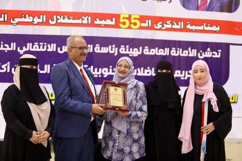 وكانت قد تحدثت الأستاذة رضية شمشير، بكلمة للمناضلات الجنوبيات قدمت فيها الشكر والتقدير للمجلس الانتقالي الجنوبي ممثلا بالرئيس القائد عيدروس الزُبيدي، وعبرت فيها عن تقديرها للجهود المبذولة من قبل الأمانة العامة لهيئة رئاسة المجلس الانتقالي، والأستاذ فضل الجعدي نائب الأمين العام للأمانة العامة، لتدشين المرحلة الأولى للتكريم، متطرقةً لجهود وتضحيات المناضلات والأدوار الريادية للمرأة التي قامت بها ومشاركتها في مختلف الميادين.