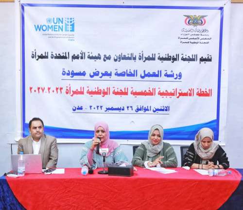 وخلال عرض مسودة الخطة الخمسية الاستراتيجية في ورشة العمل التي أقامتها اللجنة بالتعاون مع هيئة الأمم المتحدة للمرأة، أكدت رئيسة اللجنة الوطنية للمرأة الدكتورة شفيقة سعيد إيمان اللجنة القوي بالشراكة بين الجهات الحكومية والمجتمع الدولي والأممية ومنظمات المجتمع المدني المحلي.