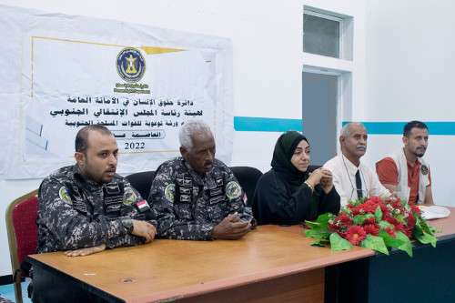 نظمت دائرة حقوق الانسان في الأمانة العامة لهيئة رئاسة المجلس الانتقالي الجنوبي برئاسة المحامية ذكرى معتوق رئيس الدائرة، ندوة توعوية حقوقية للدفعة الأولى من الشرطة النسائية من قوات حرس المنشآت في العاصمة عدن وذلك ضمن البرنامج التوعوي الذي تنفذه الدائرة لأفراد قوات المسلحة الجنوبية.