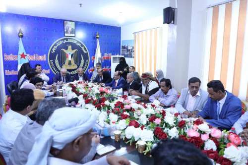 حضر الاجتماع، نزار هيثم، عضو هيئة الرئاسة للمجلس الانتقالي الجنوبي وأحمد قاسم، مدير مكتب رئيس الجمعية.