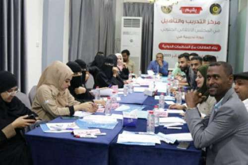 نظم مركز التدريب والتأهيل في المجلس الانتقالي الجنوبي، اليوم الأحد، في العاصمة عدن، دورة تدريبية بعنوان " بناء العلاقات مع المنظمات الدولية" لعدد من كوادر مختلف هيئات المجلس الانتقالي.