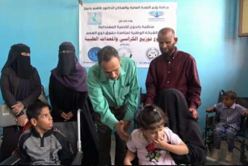 ضمن برنامج السلام والدمج في المجتمع لذوي الإعاقه وبرعايه كريمة من وزير الصحه والإسكان د.قاسم بحيبح ومحافظ محافظة عدن أ.أحمد لملس وبدعم من منظمة رائدون للتنميه المستدامة نفذت الشبكة الوطنيه لمناصرة حقوق ذوي الهمم مشروع " توزيع الكراسي والمعدات الطبيه " في محافظه عدن بالشراكة مع مركز التأهيل المجتمعي لذوي الإحتياجات الخاصه فقم ، ومركز الأطراف الإصطناعيه والعلاج الطبيعي كمرحله ثانيه