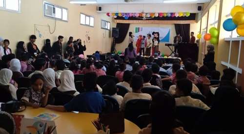 وبدأ الحفل بالقرآن الكريم..فاغنية ترحيبية واغنية دبدوب،اسئلة ثقافية ،واغنية "عالم الاطفال عالم جميل " وقصيدة للطفلة افراح نالت الاعجاب .