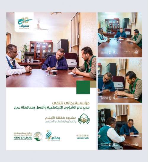 في إطار التنسيق الدائم بين المؤسسة والجهات الحكومية ذات العلاقة قام الدكتور أنس سيف مدير المشاريع بمؤسسة يماني صباح اليوم 21 فبراير 2023م بزيارة مدير عام الشؤون الاجتماعية والعمل بمحافظة عدن الدكتور محمد محمود لمناقشة سير العمل بالمشاريع المنفذة خلال الفترة الماضية