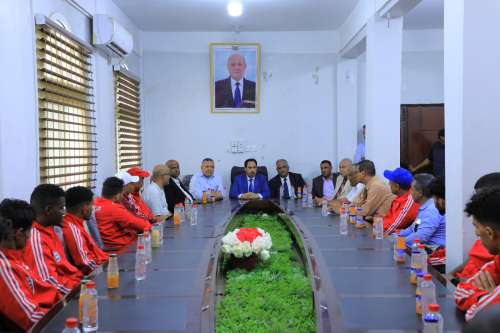 وخلال حفل الاستقبال الذي أقيم بديوان عام الوزارة بالعاصمة عدن، نقل معالي الوزير البكري، "تحيات مجلس القيادة الرئاسي برئاسة د. رشاد العليمي ونوابه، ورئيس مجلس الوزراء د. معين عبدالملك، لأفراد البعثة، وبارك لهم نجاحهم وتأهلهم إلى الدور الأول من بطولة كأس الأندية العربية".
