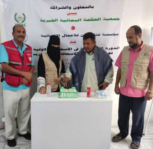 اختتمت اليوم بالعاصمة عدن دورة الإسعافات الأولية في محافظة عدن والتي نظمتها جمعية الحكمة اليمانية الخيرية بالتعاون مع مؤسسة فنار عدن بالتنسيق مع الهلال الأحمر اليمني .