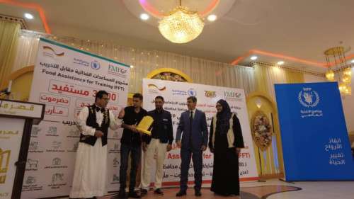 نظمت المؤسسة الطبية الميدانية بالعاصمة عدن اليوم احتفالية اختتام مشروع المساعدات الغذائية مقابل التدريب والذي نفذته المؤسسة بالشراكة مع برنامج الغذاء العالمي .