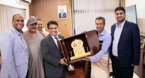 وتسلم معالي وزير النفط والمعادن درعا تكريما من نادي فحمان أبين عبر رئيس النادي الأخ أحمد محمد الصالحي ومدير الكرة الاخ حسين علي الحداد.