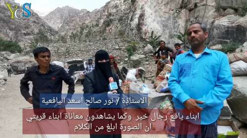 قالت الاستاذة القديرة نور صالح اسعد اليافعية ان مشروع طريق قرية السوائل يعد حلم وان شاءالله يتحقق بتكاتف أبناء يافع" واضافت في حوار لقناة "YCS" ان المشروع بدأ بحملة تبرع العام الماضي وساهم في شق نصف كيلو من الطريق "