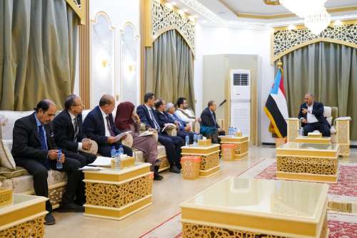 عقد الرئيس القائد عيدروس قاسم الزُبيدي رئيس المجلس الانتقالي الجنوبي، مساء اليوم الجمعة، لقاءً مشتركًا، بفريق الحوار الوطني الجنوبي الداخلي، ورؤساء عدد من المكونات السياسية الجنوبية، تقدمهم المحامي علي هيثم الغريب رئيس مجلس الحراك الجنوبي السلمي، وزير العدل السابق، وعبدالرؤوف زين السقاف رئيس المجلس الأعلى للحراك الثوري، وفادي حسن باعوم رئيس المكتب السياسي لمجلس الحراك الثوري.