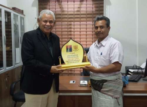 قام صباح امس رئيس نادي فحمان الرياضي الاستاذ احمد محمد الصالحي، بتكريم وكيل وزارة الشباب والرياضة الدكتور عزام خليفة في ديوان الوزارة بالعاصمة المؤقتة عدن بدرع تذكاري، وذلك تقديرا لجهوده الطيبة ومواقفه الداعمة وتشجيعه على مشاركة الفريق الكروي في البطولة العربية وحرصه على ضرورة تسجيل المشاركة والحضور التاريخي للنادي على المستوى العربي.