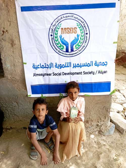 بدعم من فاعل خير دشنت جمعية المسيمير التنموية الاجتماعية بمديرية خنفر بمحافظة أبين توزيع مساعدات مادية على الأسر الايتام الاكثر احتياجا بمناطق بئر الشيخ والابقار والوادي