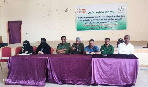 حيث رحبت الأمين العام لاتحاد نساء أبين الأستاذة عديله احمد خضر بالحاضرين من ممثلي السلطة المحلية ومنظمات المجتمع المدني والإعلاميين والنساء المستفيدات واشارت إلى أن اتحاد نساء أبين ينفذ اليوم توزيع 16 من المشاريع الصغيرة على النساء والفتيات المعنفات والمنتهكات في إطار مشروع توفير سبل العيش والتمكين الاقتصادي عبر المساحات الآمنة بدعم من صندوق الأمم المتحدة للسكان الذي يدعم اتحاد نساء أبين بسخاء لافته إلى أن هذا التمكين للربع الثاني للعام الجاري 2023م يأتي من أجل تحسين مستوى دخل المرأة في محافظة أبين كون محافظة أبين عانت ومرت بحروب وصراعات مسلحة وكانت المرأة هي المتضرر الأكبر من هذه الأحداث بفقدان ذويها ومصدر دخلها لذلك يحاول اتحاد نساء أبين تقديم التسهيلات والخدمات للنساء والفتيات في كافة مديريات محافظة أبين .