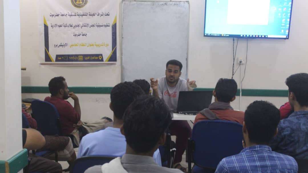 نظمت منسقية المجلس الانتقالي الجنوبي في كلية العلوم الإدارية بجامعة حضرموت، يوم الثلاثاء، دورة تدريبية في النظام المحاسبي "الاونكس برو" تحت اشراف الهيئة التنفيذية لمنسقية المجلس الانتقالي في جامعة حضرموت.