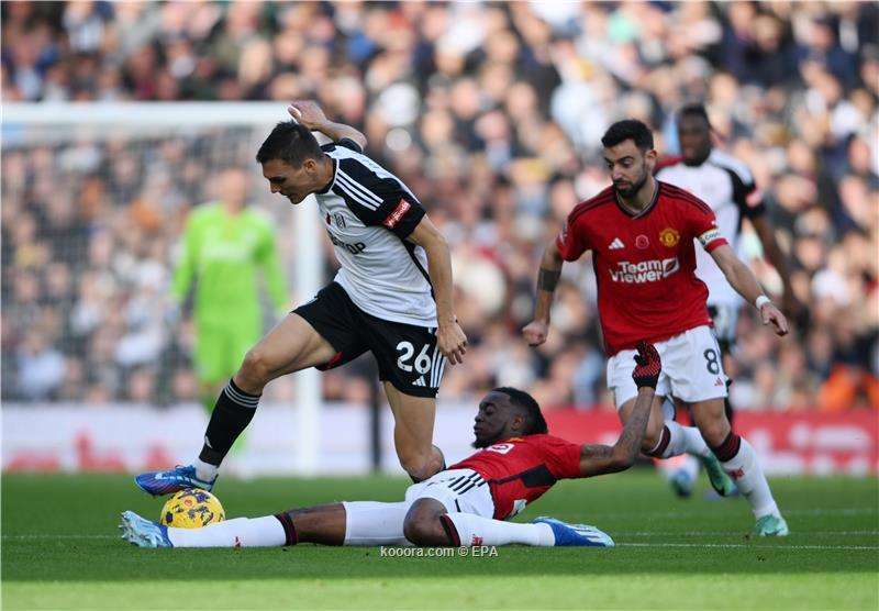 نجح مانشستر يونايتد في التغلب على مضيفه فولهام بشق الأنفس بهدف دون رد، اليوم السبت، في اللقاء الذي أقيم على ملعب كرافين كوتاج، ضمن الجولة 11 من الدوري الإنجليزي الممتاز. وسجل هدف مانشستر يونايتد الوحيد برونو فيرنانديز في الدقيقة (91). بتلك النتيجة، رفع مانشستر يونايتد رصيده إلى 18 نقطة ليرتقي إلى المركز السادس، بينما تجمد رصيد فولهام عند 12 نقطة في المركز 14. افتتح اليونايتد التسجيل مبكرا في الدقيقة الثامنة، بعدما نفذ إريكسن مخالفة، مرسلا عرضية تابعها جارناتشو بتمريرة عرضية داخل منطقة ال6 ياردة، لتصل إلى ماكتوميناي الذي سجل بسهولة في الشباك، قبل أن يتم إلغاء الهدف بعدها بداعي التسلل بعد الرجوع إلى تقنية الفار. وأتى الظهور الأول لفولهام في الدقيقة 23، بمتابعة ويلسون كرة مبعدة من دفاع اليونايتد على حدود المنطقة، مسددا كرة مباشرة على الطائر ذهبت بعيدا عن المرمى. وعاد اليونايتد للمحاولة من جديد في الدقيقة 32، بإرسال فيرنانديز عرضية من ركنية، أبعدها دفاع فولهام وتابعها إيفانز بتسديدة مقصية ذهبت أعلى العارضة. وبعدها مهد هويولند الكرة لبرونو على حدود المنطقة في الدقيقة 34، ليسدد البرتغالي كرة مقوسة ذهبت ضعيفة في يد لينو. ومن هجمة مرتدة سريعة، انطلق أيوبي من قبل وسط الملعب في الدقيقة 38، حتى وصل إلى حدود المنطقة، مسددا كرة قوية مرت إلى جوار القائم. وفي الدقيقة الأولى من الوقت بدل الضائع، سدد ويليان كرة مقوسة من على حدود المنطقة، مرت إلى جوار القائم لينتهي الشوط الأول بالتعادل السلبي. وبدأ اليونايتد الشوط الثاني بتسديدة قوية من جارناتشو من داخل المنطقة في الدقيقة 48، أمسك بها لينو. ورد فولهام في الدقيقة 58 بتسديدة من خارج المنطقة عبر ويليان، ذهبت إلى جوار القائم. وكاد فولهام أن يفتتح التسجيل في الدقيقة 61، بتسديدة صاروخية من ويلسون من على حدود المنطقة، تألق أونانا في التصدي لها. وتبعه بالينيا بتسديدة قوية أخرى من داخل المنطقة في الدقيقة 62، تألق أونانا من جديد في إبعادها إلى ركنية. وظهر مونيز في الدقيقة 65، بالارتقاء لعرضية من ركلة ركنية مسددا رأسية ذهبت أعلى العارضة. وحاول البديل بيليستري منح التقدم لليونايتد في الدقيقة 71، بتسديدة أرضية من داخل المنطقة، ولكن ذهبت ضعيفة في يد لينو. وعاد أيوبي للمحاولة في الدقيقة 73 بتسديدة من على حدود المنطقة، ذهبت بعيدا عن المرمى. وبحث دالوت عن مباغتة لينو بتسديدة قوية من على حدود المنطقة في الدقيقة 79، ولكن كرته مرت إلى جوار القائم. وفي الدقيقة 83 تحصل اليونايتد على مخالفة، نفذها فيرنانديز بتسديدة أرضية قوية تصدى لها لينو. ونفذ ويلسون مخالفة على حدود المنطقة في الدقيقة 89، مسددا كرة مباشرة ذهبت أعلى العارضة. وخطف فيرنانديز الانتصار لليونايتد في الدقيقة الأولى من الوقت بدل الضائع، بتسديدة أرضية من على حدود المنطقة سكنت الشباك، لينتهي اللقاء بفوز مانشستر (1-0).
