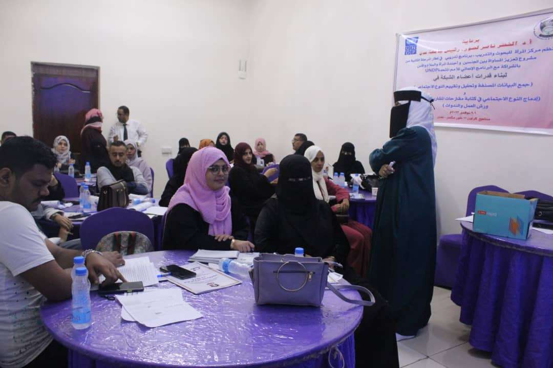 يأتي ذلك ضمن فعاليات المرحلة الثانية من مشروع تعزيز المساواة بين الجنسين وٱجندة المرأة والسلام والٱمن بالشراكة مع البرنامج الإنمائي للأمم المتحدة " UNDP برعاية أ.د.الخضر ناصر لصور رئيس جامعة عدن واشراف د/ هدى علي علوي رئيسة مركز المرأة للبحوث والتدريب جامعة عدن .