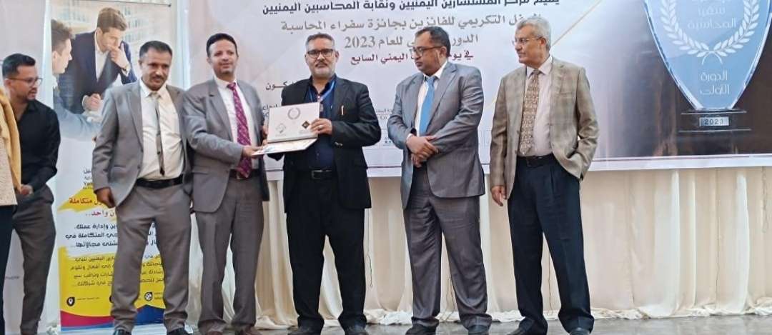 برعاية معالي وزير المالية الاستاذ سالم صالح بن بريك ومعالي وزير الصناعة والتجارة الاستاذ / محمد الاشول ، نظم مركز المستشارين اليمنين ونقابة المحاسبين صباح اليوم بالعاصمة عدن الحفل التكريمي للفائزين بجائزة سفراء المحاسبة الدورة الاولى للعام 2023 في يوم المحاسب اليمني السابع .برعاية الراعي الرسمي "يمن سوفت" .