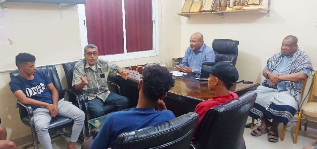 التقى مساء يوم الخميس بمكتبه المدير العام لمكتب وزارة الشباب والرياضة ساحل حضرموت الكابتن حسن صالح مسجدي بمعية رئيس اتحاد كرة القدم فرع الساحل عبدالله سعيد السعدي بأعضاء بعثة المنتخب الوطني للناشئين المختارين ضمن التشكيلة الأولية للمنتخب من ساحل حضرموت والمغادرين صباح يوم غد الجمعة إلى مدينة لودر بمحافظة أبين للانخراط مع زملائهم من المحافظات الأخرى لغرض اختيار التشكيلة النهائية للممتخب المشارك في بطولة غرب آسيا المزمع إقامتها في سلطنة عمان بداية الشهر القادم .