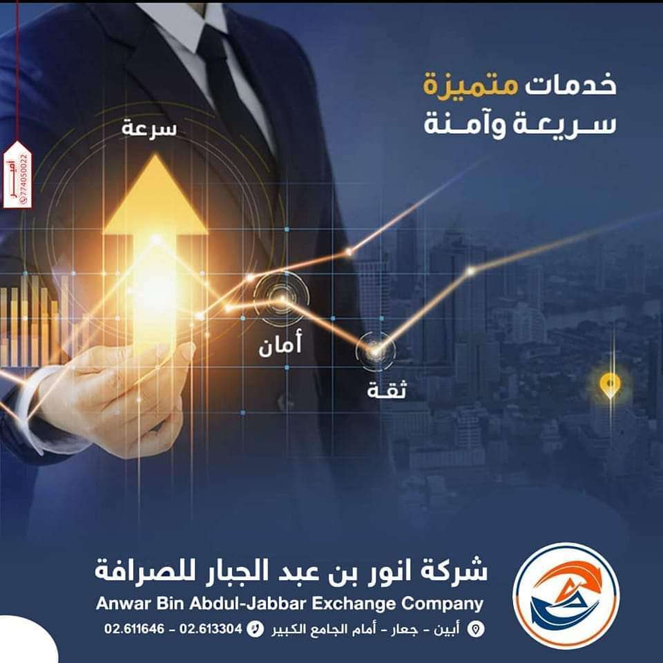 أسعار صرف الريال اليمني مقابل (الدولار-السعودي) يوم السبت 25/11/2023 من شركة أنور بن عبدالجبار للصرافة والتحويلات الداخلية والخارجية جعار أبين.