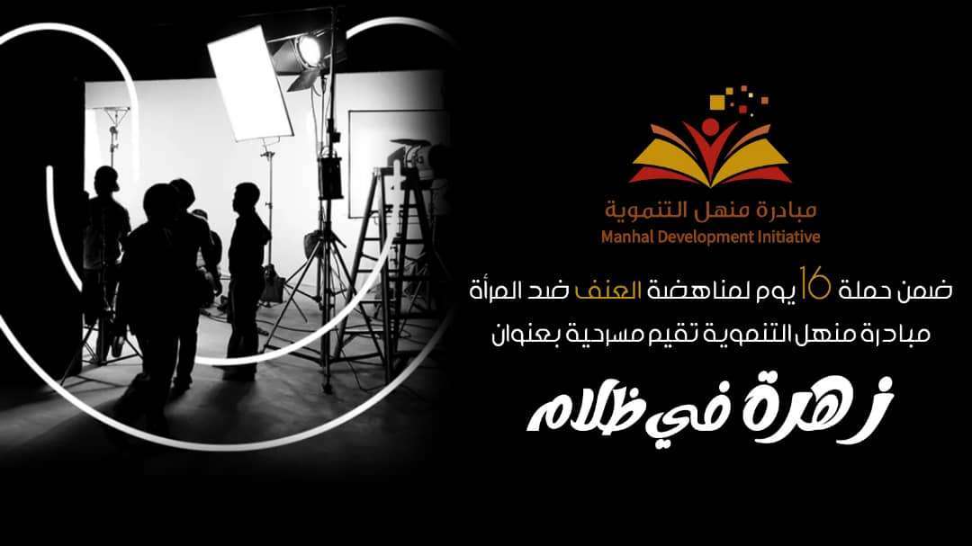وفي سياق المشاركة في الحملة، قامت مبادرة "منهل التنموية" بتنظيم مسرحية عن العنف ضد المرأة في يوم 9 ديسمبر، شارك في تقديم المسرحية أعضاء المبادرة، وحققت المسرحية رواجًا كبيرًا وتأييدًا حارًا من الجمهور.